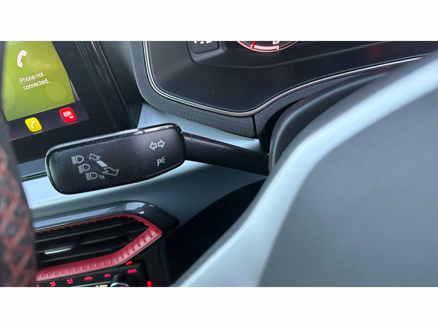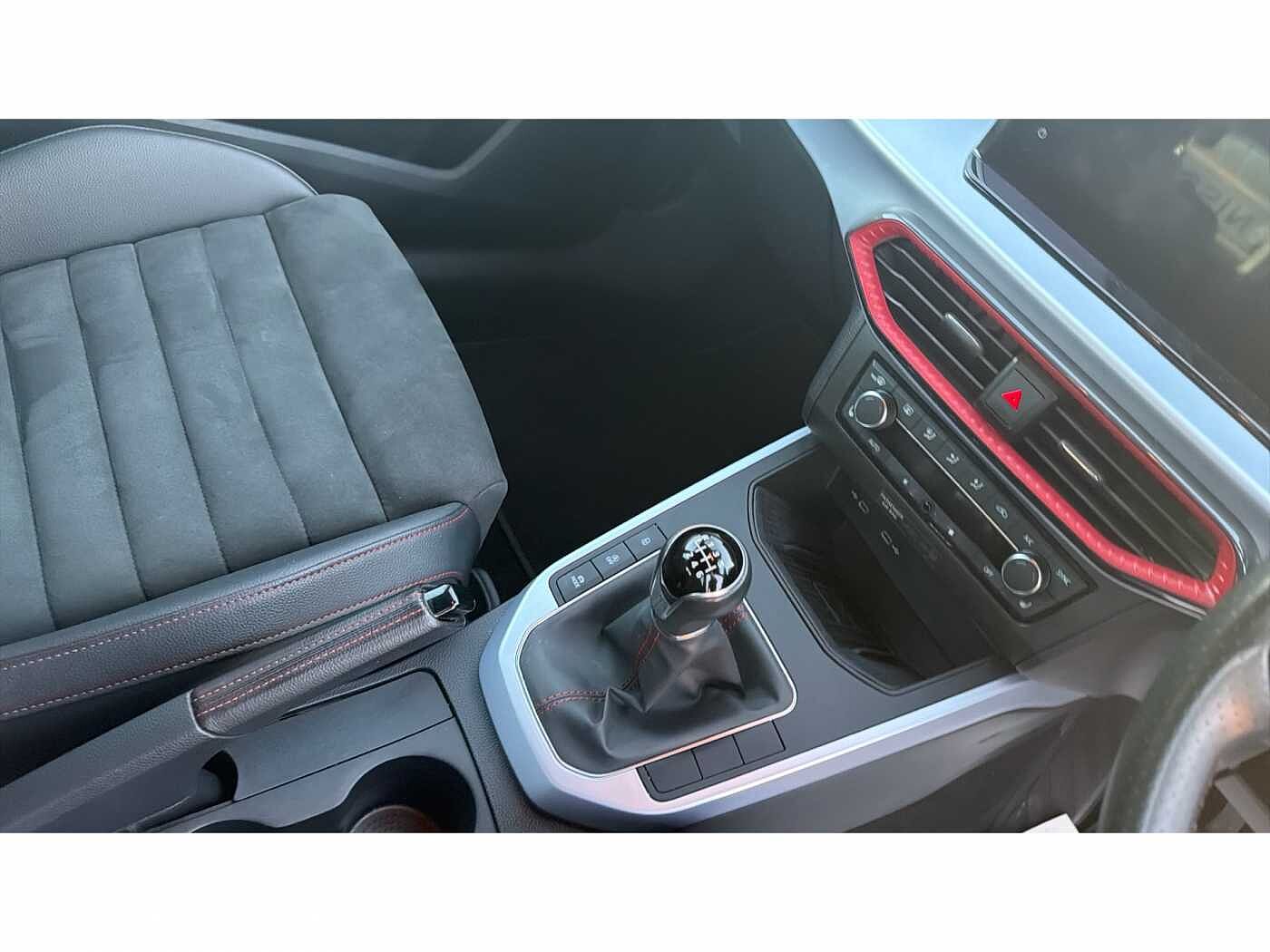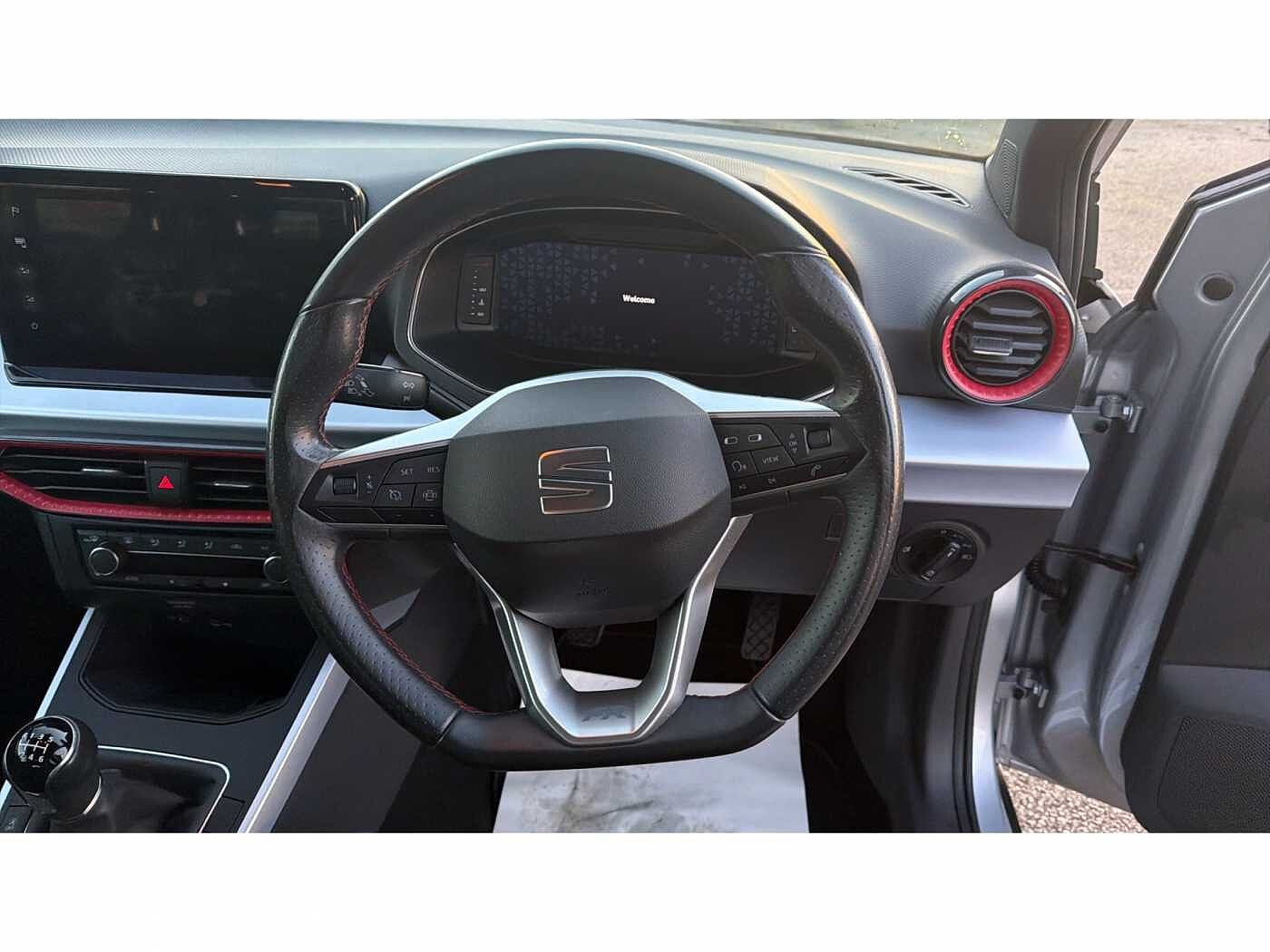 - Perforated flat bottomed leather steering wheel/gear knob/handbrake with red stitching and FR logo
